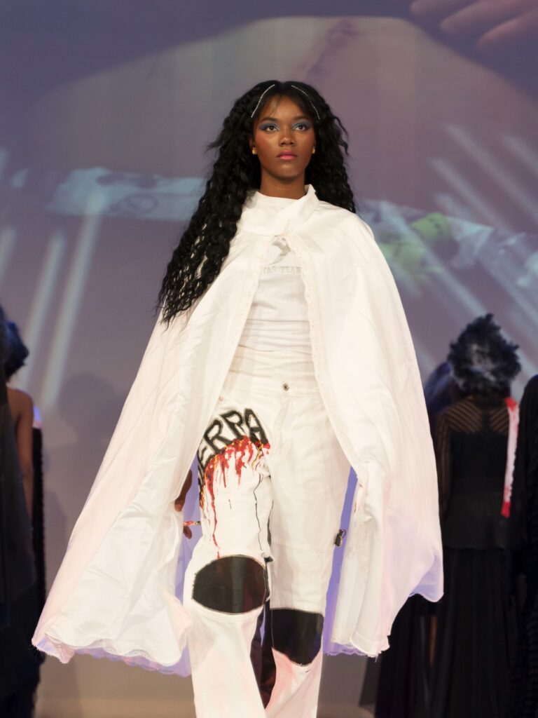 Como parte del emocionante evento, el talentoso diseñador dominicano Bautista Sierra participó con “Gaza”, una espectacular propuesta que fusionó la estética contemporánea con un poderoso mensaje de conciencia social.